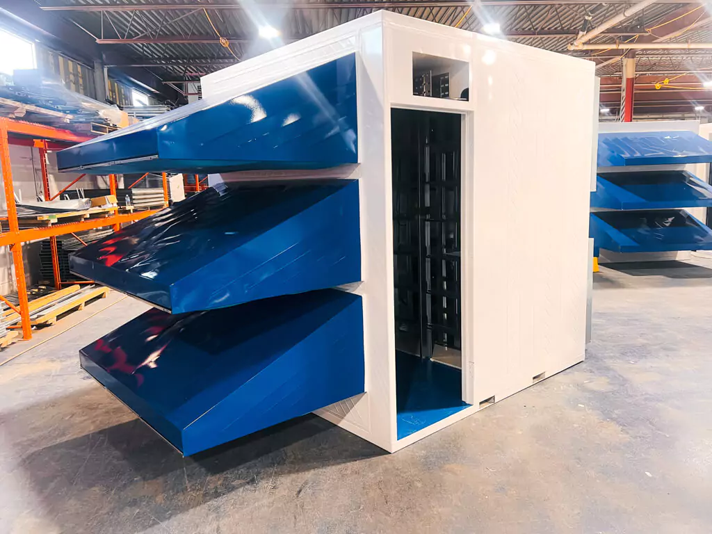 Each shelf full of ASICs is fitted with a CNC-cut hot aisle containment barrier which improves laminar flow and minimizes cooling costs while keeping miners running at ideal temperatures.